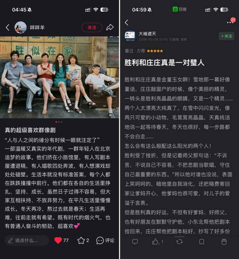 不少有异乡打拼经历的观众,被剧中北漂追梦的日常深深戳中:为生计奔波的窘迫、理想碰壁的失落、低谷时朋友互相托底的温暖,都让大家直呼“看到了现实中的自己”,这份不悬浮的烟火气,成了最动人的共情点。